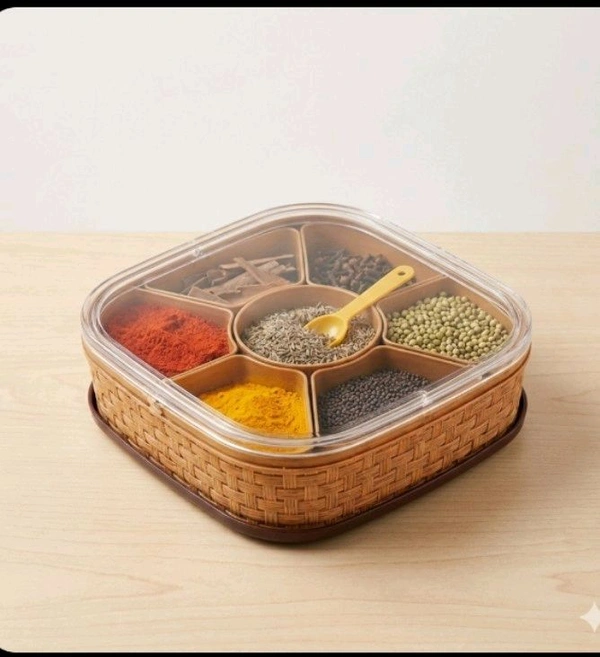 Organize your spices and ingredients with ease using the 7-section Square Heavy Duty Plastic Masala Box. Designed for modern kitchens, this versatile container combines functionality, durability, and style to keep your masalas fresh and accessible. Whether you're a seasoned chef or someone who loves cooking at home, this masala box is an essential addition to your kitchen toolkit.