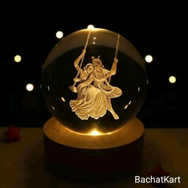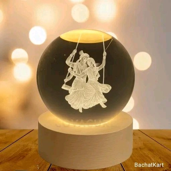 Radhakrishna 3D Crystal Ball Warm LED Night Light with Wooden Base - Buy 1 Get 1 Free!